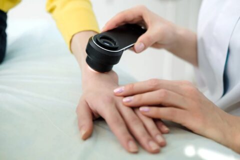 Dermatoscopy is the checking of skin with a special magnifying lens.